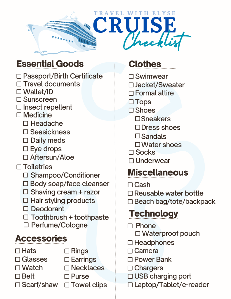 Going on a cruise can be an exciting and relaxing vacation, but it’s important to make sure you’re prepared with the right items to pack. While there are items you can purchase onboard if you forget yours at home, you can definitely be prepared to pay a mark up! So save your coin and spend it where it matters–like on a Mai Tai 😉 Here are some essentials to consider when packing for your cruise: